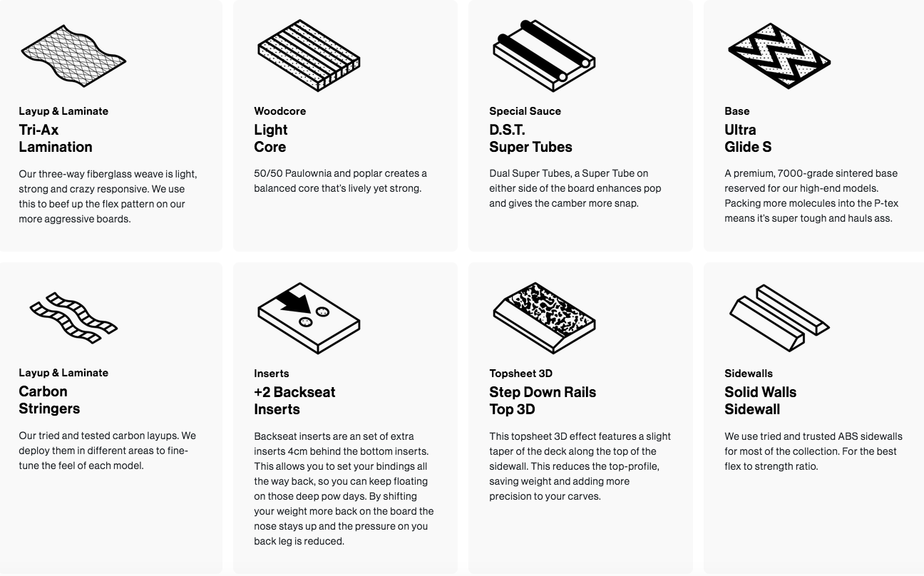 De Thunder is een regelrechte snelheidsfreak die gemaakt is voor agressief boarden in het resort en turbo-opgevoerde poederafdalingen. Krachtige rijders zullen genieten van de soepele respons die we hebben ingebouwd door royaal gebruik te maken van carbon en een afgeschuinde top-sheet naar de taille toe.