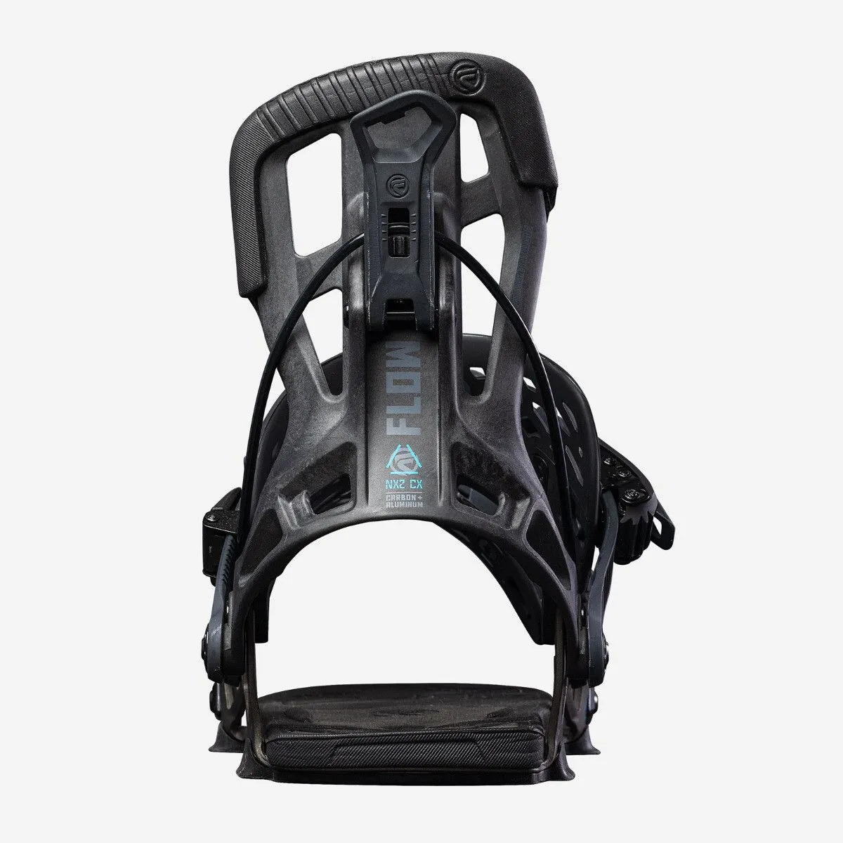 De Flow NX2-CX is een super high performance binding die de lichtste, meest responsieve materialen combineert met een verbluffend minimalistisch design. Met een baseplate van met precisie gefreesde aluminiumlegering wordt kracht onmiddellijk van kant tot kant overgebracht. Hij is ook spijkerhard – ongeacht de vrieskou of de slams die hij te verduren krijgt. We hebben dit stijve platform gecombineerd met onze stijfste met carbon geïnfuseerde nylon Asym Uniback voor ultieme controle over de heelside. Een Fusion PowerStrap biedt de snelst mogelijke instap en comfortabele ondersteuning die over een groter deel van je voet wordt verdeeld. Het ExoFrame is ons lichtste ontwerp, met een scharnierend hulppatroon dat perfect om de schoen valt. De NX2-CX is ook uitgerust met ActiveStrap Technology, die de straps automatisch omhoog brengt als je de hiback naar achteren kantelt, zodat je meer ruimte hebt om je voet naar binnen te schuiven.N-Gel hielkussentjes, gekantelde voetbedden en eersteklas aluminium ratchets completeren een binding die gemaakt is voor warpsnelle turns en agressieve all-mountain freestyle.