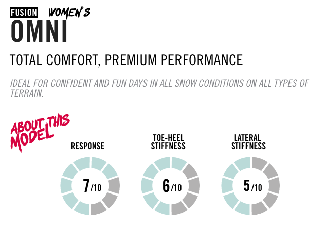 De baseplate en hiback van de Omni zijn gemaakt van lichtgewicht glasgevuld nylon. De baseplate en hiback zijn asymmetrisch gevormd voor een betere pasvorm en hebben een middenstijve flex die overal op de berg voor een soepele respons zorgt.