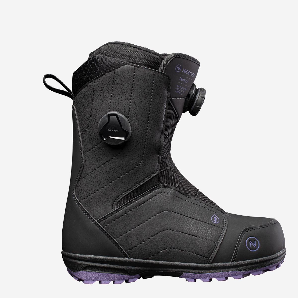 De Nidecker Trinity boa combineert geweldige technologie en comfort in een geweldig uitziende laars die perfect is voor progressie. Gebouwd rond onze unieke FlowFit leest, past hij gegarandeerd perfect in elke Nidecker two-strap of Flow speed-entry binding. Er zijn twee Boa-draaiknoppen zodat je het bovenste en onderste gedeelte apart kunt aandraaien, en dankzij de nieuwste H4 Coiler™ en TX veters gaat het proces sneller en soepeler dan ooit tevoren. Een B.F.T. Gravity-zool zorgt voor betrouwbare tractie in koude omgevingen – of je nu een bergkam beklimt of gewoon over een ijzige parkeerplaats loopt – en samen met een 3D-gevormde voering en voetbed blijven je voeten de hele dag comfortabel. De Trinity biedt dit alles voor een scherpe prijs, terwijl de gemiddelde flex geschikt is voor een breed scala aan rijstijlen en -capaciteiten.