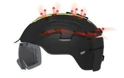 Schuifbare ventilatieopeningen maken het gemakkelijk om de ventilatie aan te passen voor maximaal comfort in alle weersomstandigheden, terwijl de toevoeging van geïntegreerde ventilatieopeningen aan de voorkant van de helm ervoor zorgen dat de lucht uit de bril kan ontsnappen, waardoor beslaan wordt voorkomen.