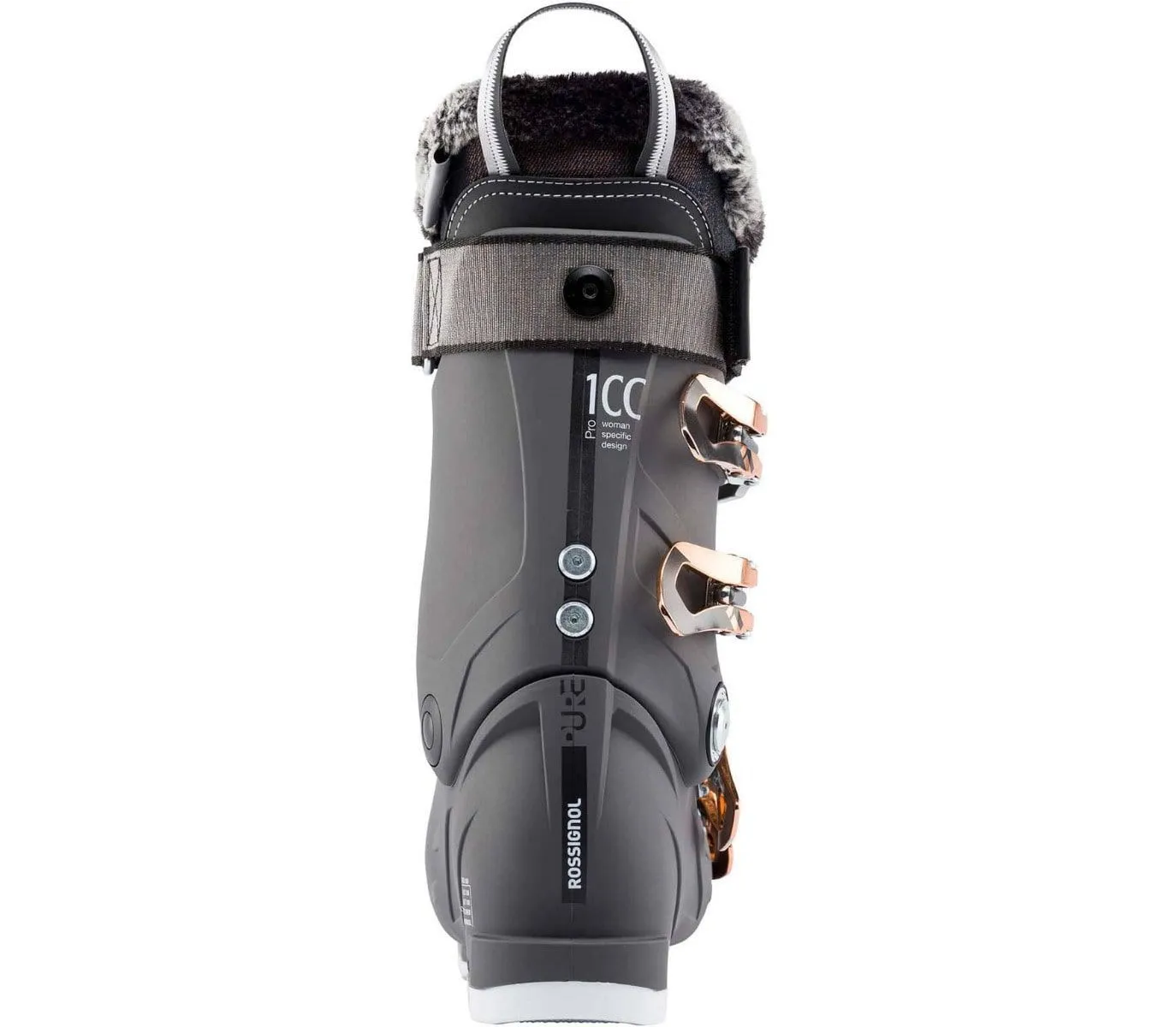 De geheel nieuwe Rossignol Pure Pro 100 is een sportieve skischoen voor dames. De pasvorm van de Pure Pro 100 is geheel naar de voet te vormen voor optimaal comfort en maximale controle. Een voering van Merino wol zorgt zelfs op de koudste dagen voor warme voeten. De lichtgewicht buitenschaal biedt een directe krachtoverbrenging. Eigenschappen Rossignol Pure Pro 100 skischoen