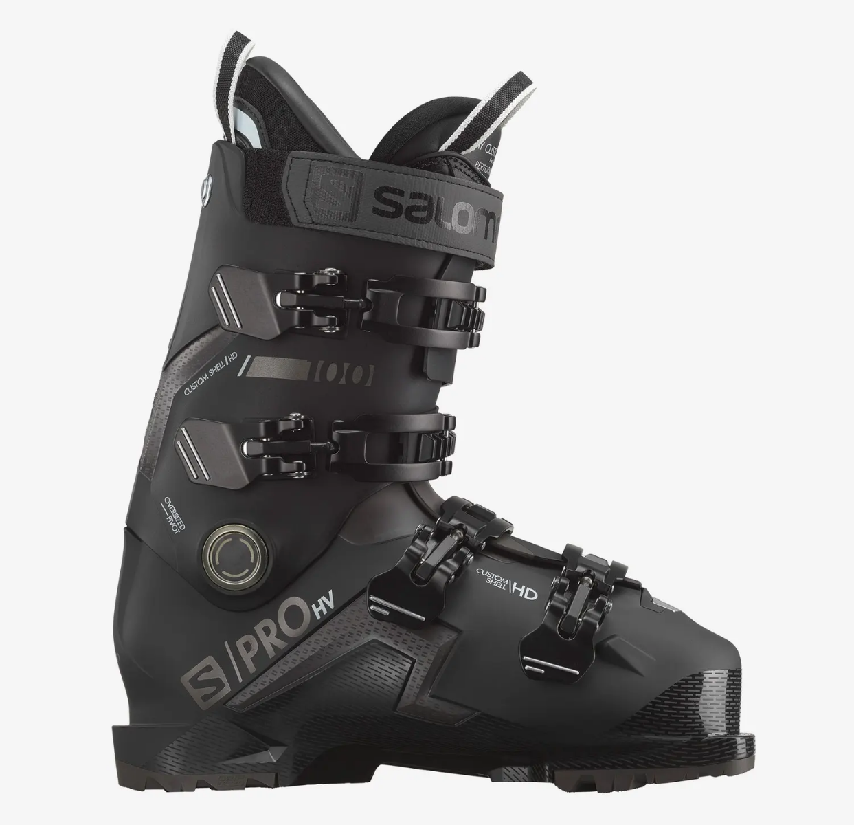 De Salomon S Pro 100 HV is een breder model skischoen voor heren . De stijvere flex van 100 biedt een goede krachtoverbrenging. Dankzij de naar de voet te vormen My Custom Fit 3D Performance binnenschoen en de vervormbare Custom Shell buitenschaal kan de pasvorm optimaal naar de voet gevormd worden. Dit geeft een maximale fixatie van de voet zonder in te leveren op comfort. HV staat voor high volume skischoenen. Dit Hv is een bredere variant dan het basis model.