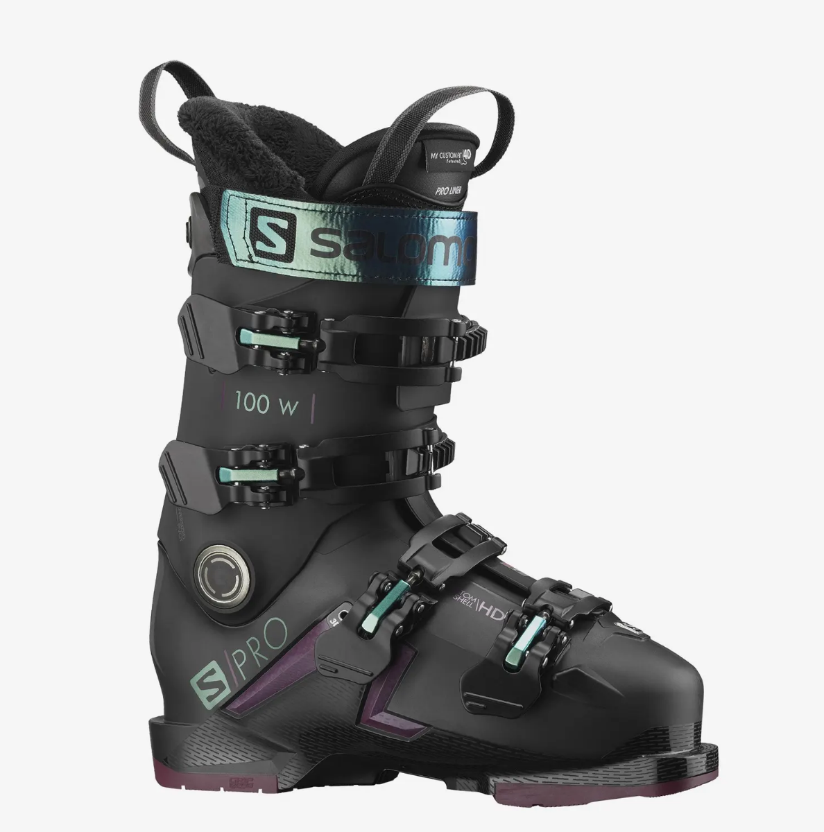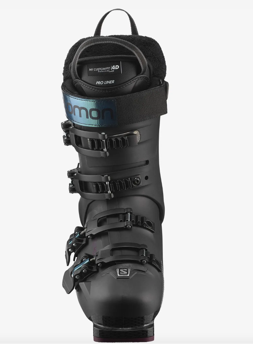 De Salomon S Pro 100 is een skischoen voor dames met de optimale mix van comfort en prestaties. De stijfheid van de 100 flex zorgt voor een goede krachtoverbrenging en veel controle. Dankzij de naar de voet te vormen My Custom Fit 3D Performance binnenschoen en de aanpasbare Custom Shell buitenschaal is de pasvorm van de S Pro 100 optimaal naar de voet te vormen. Dit levert een comfortabele pasvorm op met een goede fixatie van de voet. tevens zijn deze schoenen voorzien van Gripwalk zooltjes voor meer grip tijdens een korte wandeling.